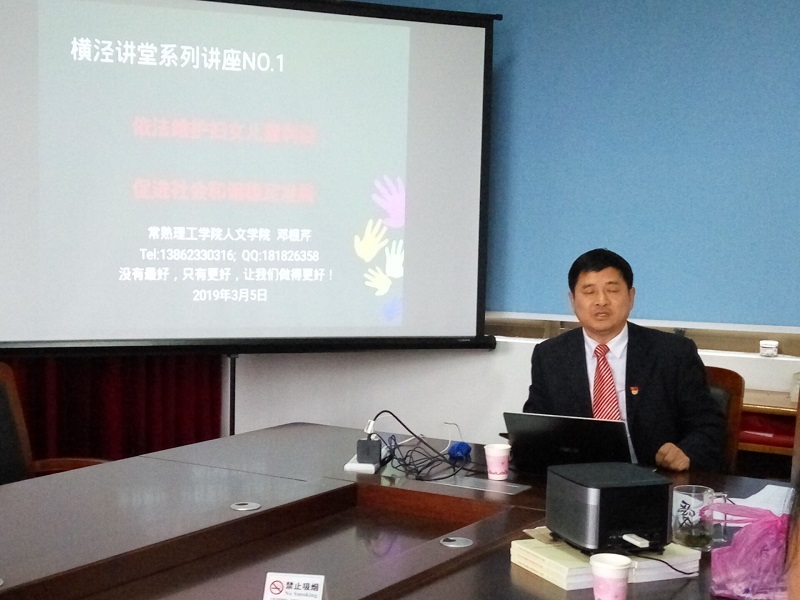 2019年3月5日,《依法维护妇女儿童利益,促进社会和谐稳定发展——妇女儿童权益保护专题讲座》在常熟市沙家浜镇横泾村市民学校会议室举行,横泾村25名妇女聆听了讲座。讲座由常熟理工学院人文学院分工会主席邓根芹主讲。