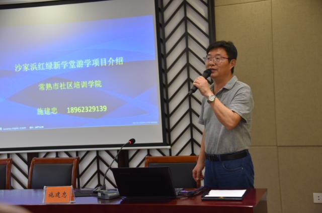 1.常熟市培训学院副院长施建忠抓住此次培训契机,向学员们介绍了社区教育游学项目—“红绿新学堂”.
