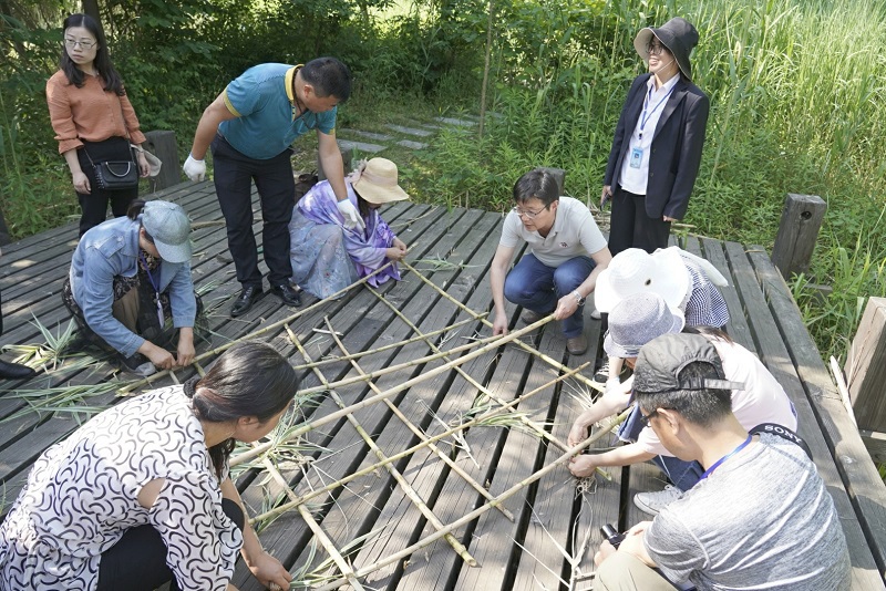 4.“游船观鸟”、“浮岛制作”照片——沙家浜作为国家湿地公园,湿地资源丰富,尤其是鸟类数量已经达到了126种。导学带领大家制作浮岛,以实际行动为为鸟儿做个家,为沙家浜的鸟类与湿地保育尽一份心力。