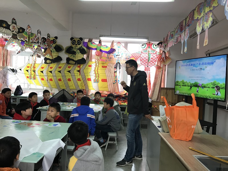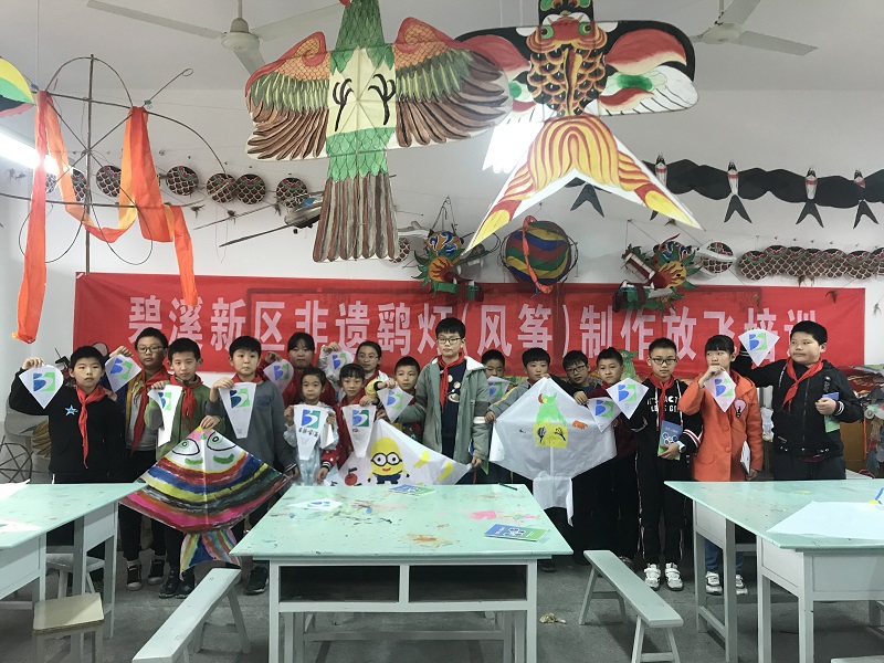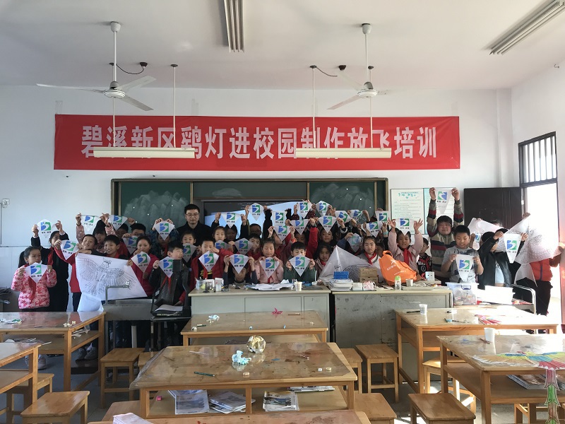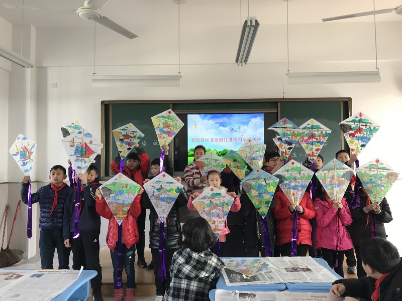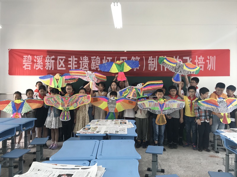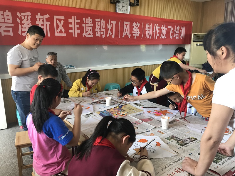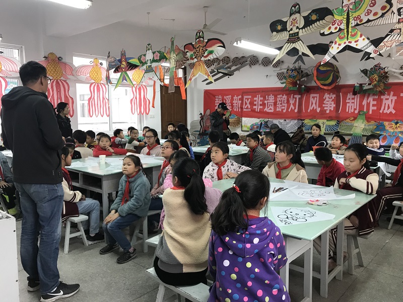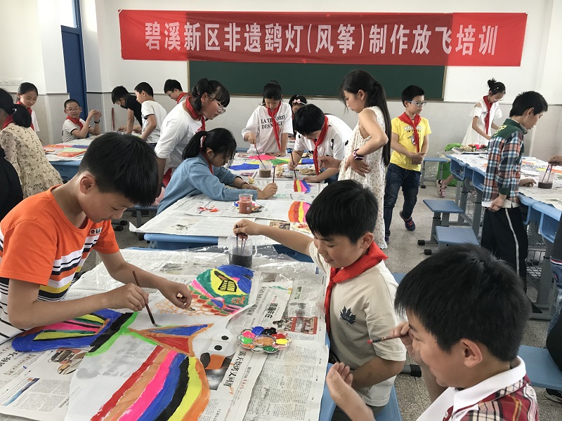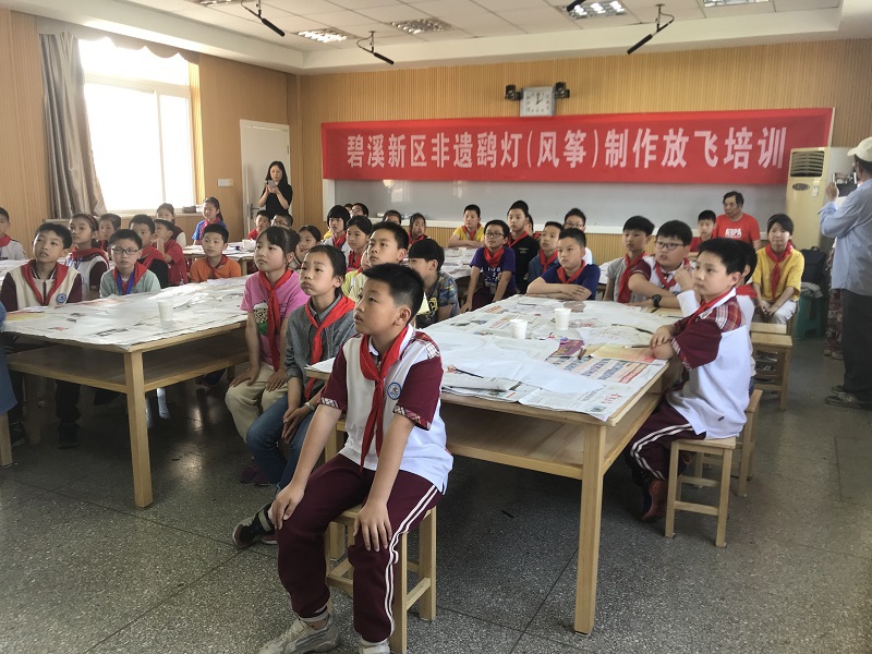 为增进区内青少年对碧溪上鹞灯传统文化的了解,丰富他们的学习生活,提高他们的动手实践能力,碧溪新区分别于2019年上、下半年在区域内四所小学开展非遗鹞灯进校园培训活动。碧溪新区鹞灯协会、常熟市和平风筝俱乐部、常熟阿庆嫂风筝队的几位成员参与了本年度的鹞灯制作培训。