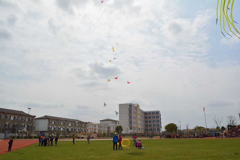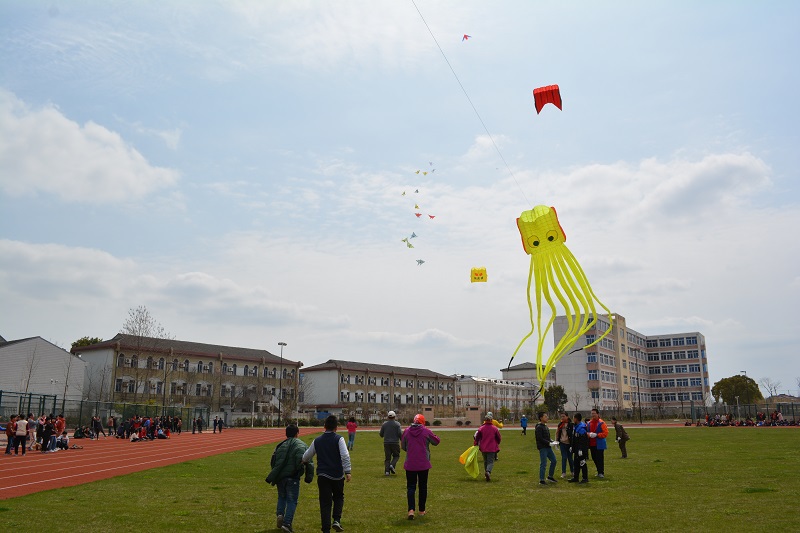 除课堂培训外,碧溪新区还组织了鹞灯放飞活动,鹞灯协会的几位老师将巨大的章鱼鹞灯、蝴蝶鹞灯、老虎鹞灯、蝙蝠鹞灯、小丑鱼鹞灯,以及由同学们自己亲手绘制的单个菱形鹞灯串联而成的长鹞灯陆续放上天空。这些上鹞灯形态各异、五颜六色,伴着蓝天白云翩翩起舞,也引来同学们的阵阵欢呼。