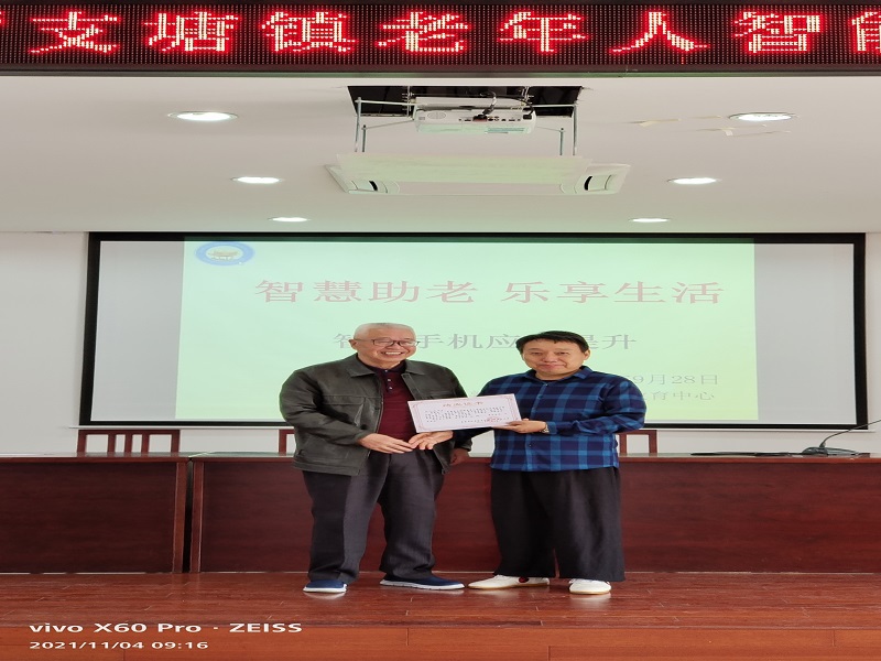 9月28号上午,智能手机提升培训活动开班,社区教育中心徐晓明校长简单介绍了智能技术在生活中的应用,对参加培训的老同志表示热烈欢迎。学员代表原支塘镇副镇长孙龙元说对这个培训很期待,他希望老同志都能熟练操作智能手机,融入智慧社会。