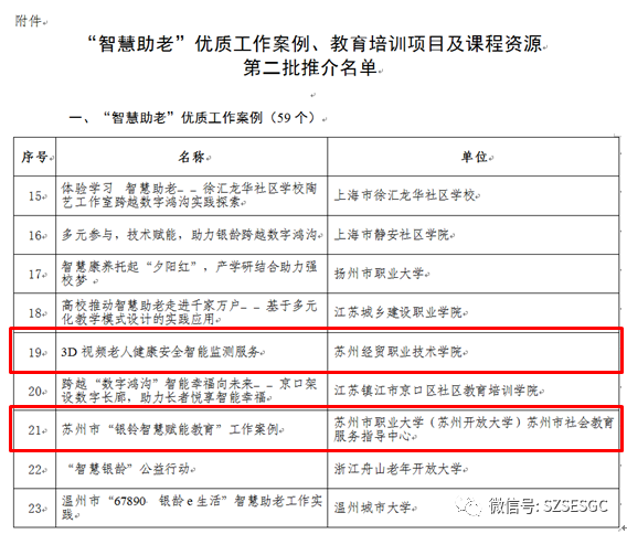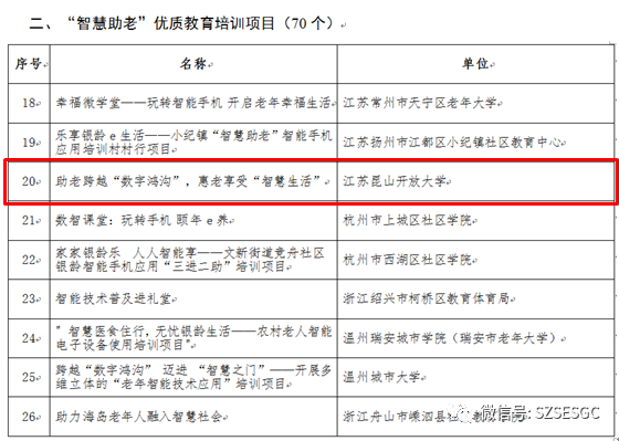 近日,教育部职业教育与成人教育司发布《关于公布“智慧助老”优质工作案例、教育培训项目及课程资源第二批推介名单的公告》,我市共入选12项,其中“智慧助老”优质工作案例2个(全国共59个)、优质培训项目1个(全国共70个)、优质课程资源9个(全国共169个)。