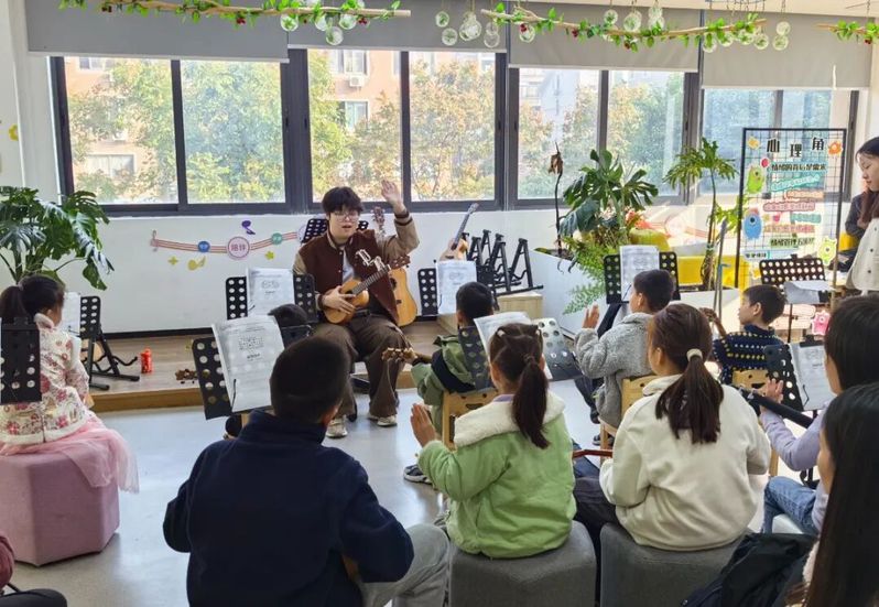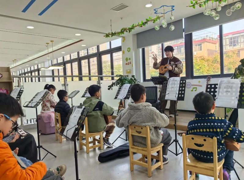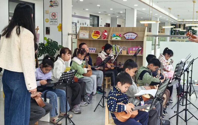 本次课程共吸引了聆湖社区辖区内29名青少年参与,年龄分布在7-12岁。课程项目采用分批精细化、小班化的教学模式,设计了“趣味乐理+实操演练+小组互动”的教学模式,从乐器构造、基础指法到简单曲目弹奏,循序渐进引导孩子感受音乐魅力,在潜移默化中提升审美情趣。项目设计精准对接青少年成长需求的课程设置,有效破解了基层社区艺术教育资源不足的难题,让社区教育阵地真正“活”起来。